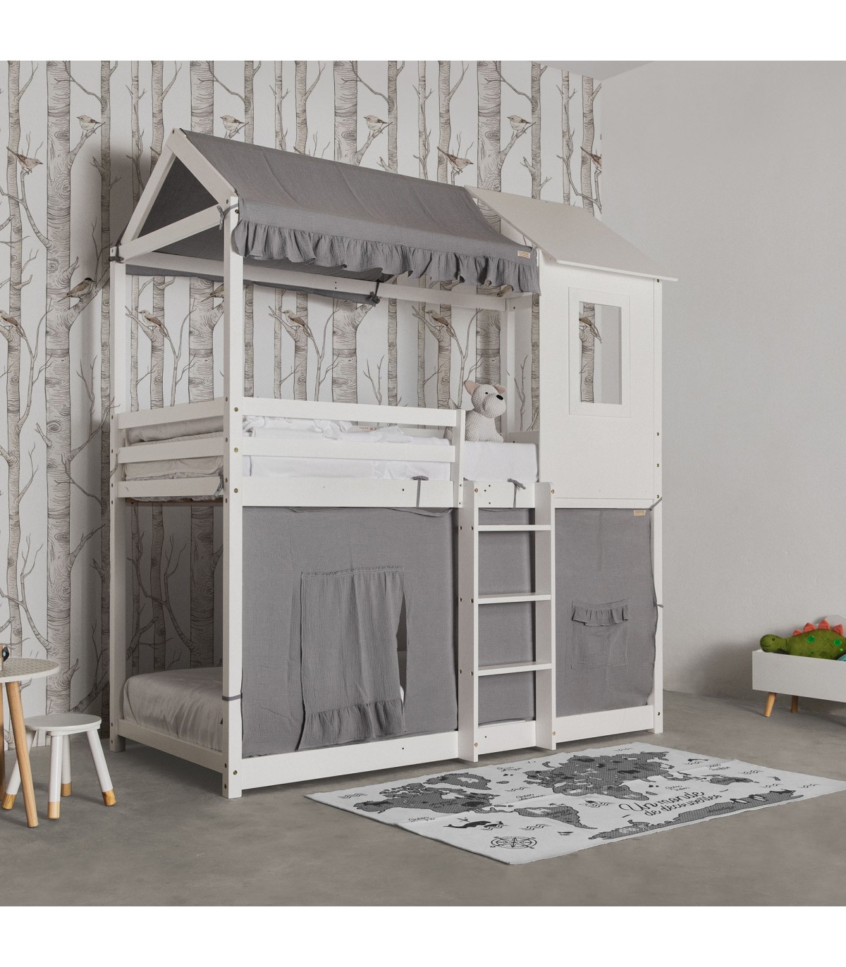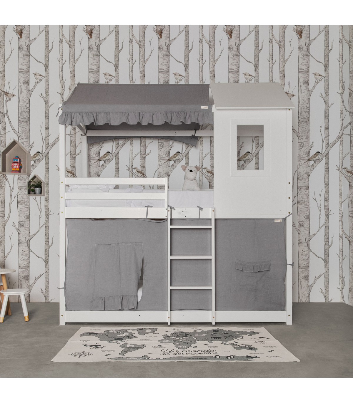 Set aus Betthimmel und Unterteil, perfekte Größe für MU0311 Etagenbett, sowohl Kiefer als auch weiß.