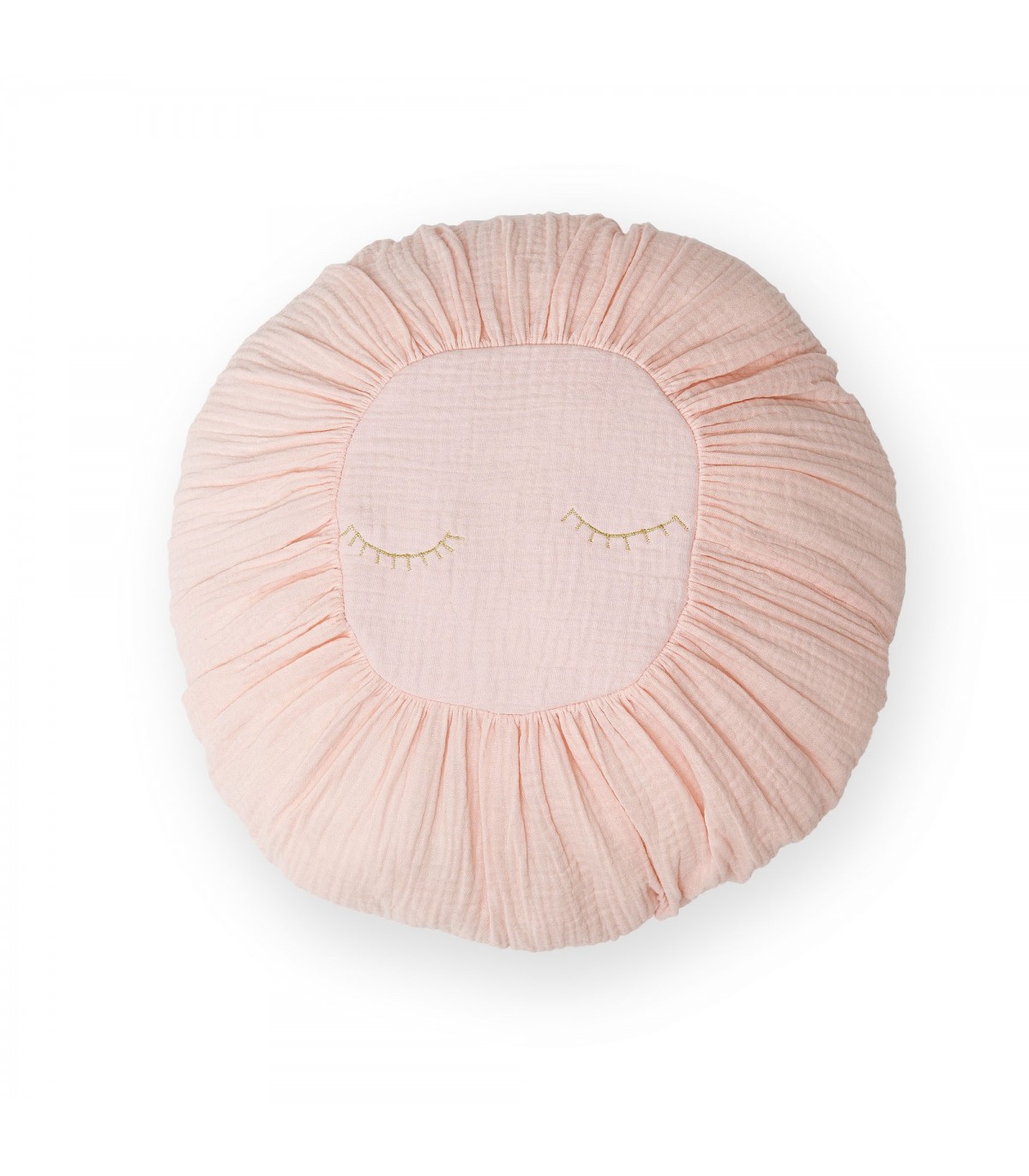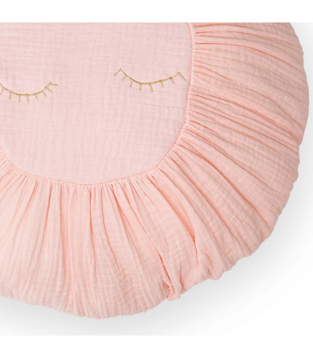 Con unas pestañas bordadas en color dorado. Dale un toque muy chic con este cojín tan bonito. El relleno está incluido. No es desenfundable. Se puede lavar en la lavadora en ciclo corto y centrifugado suave.