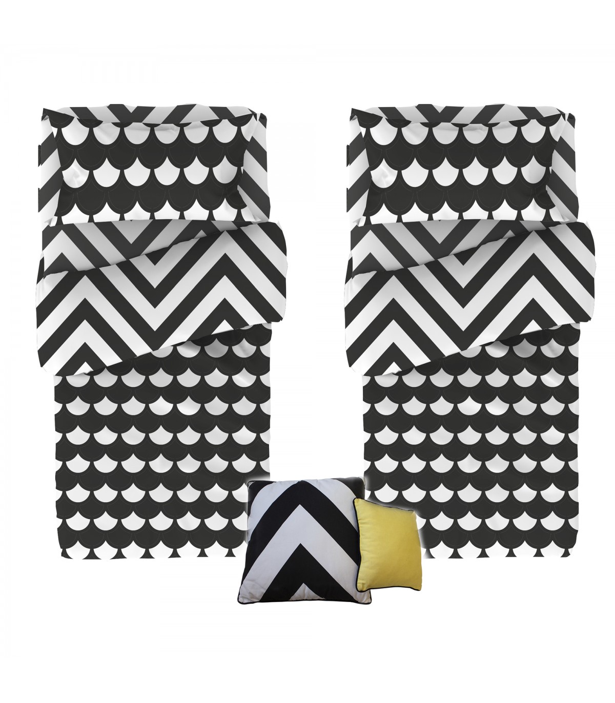 Incluye 2 fundas de edredón nórdico, 2 sabanas bajeras, 2 fundas de almohada y 1 pack de 2 cojines.