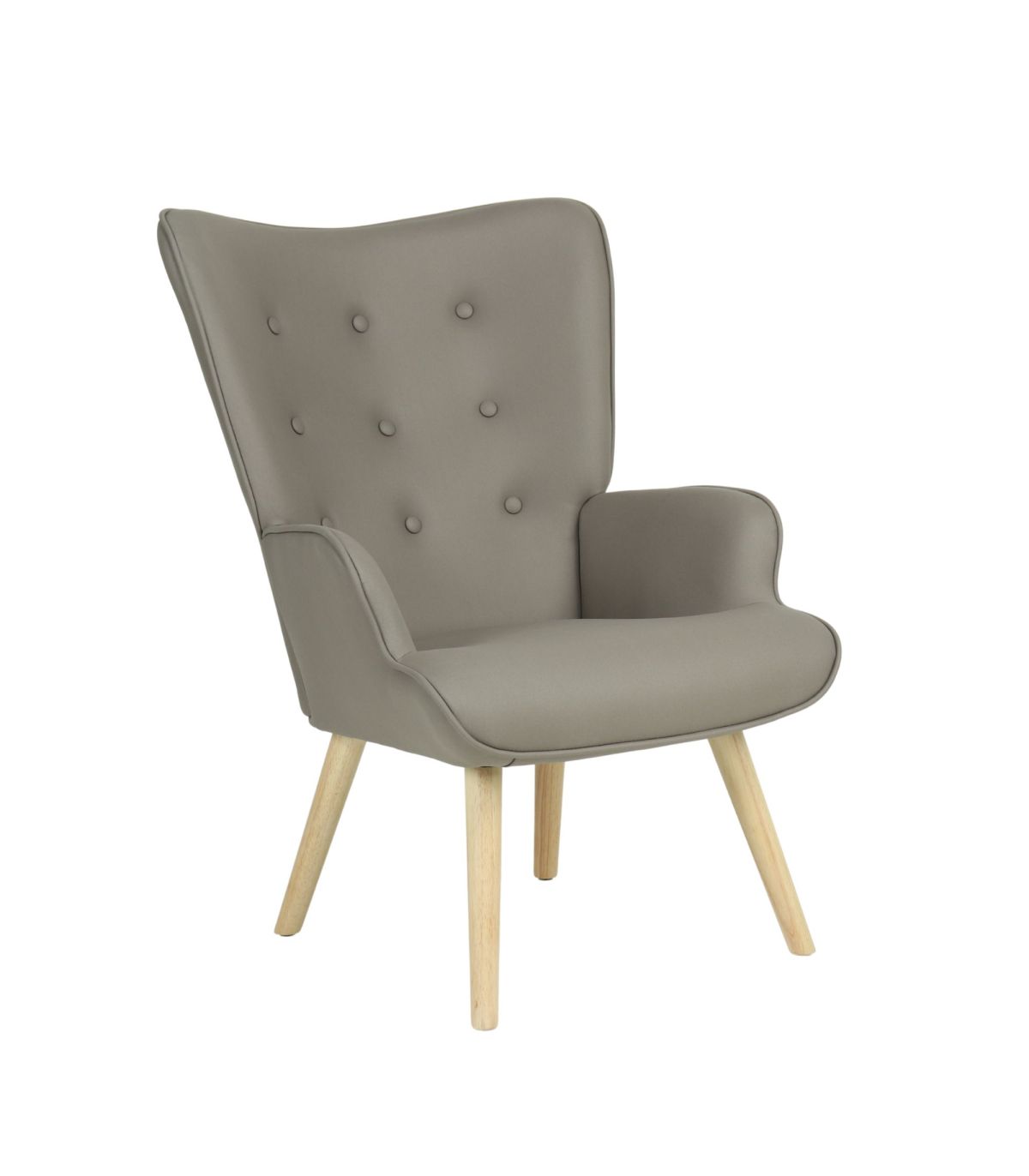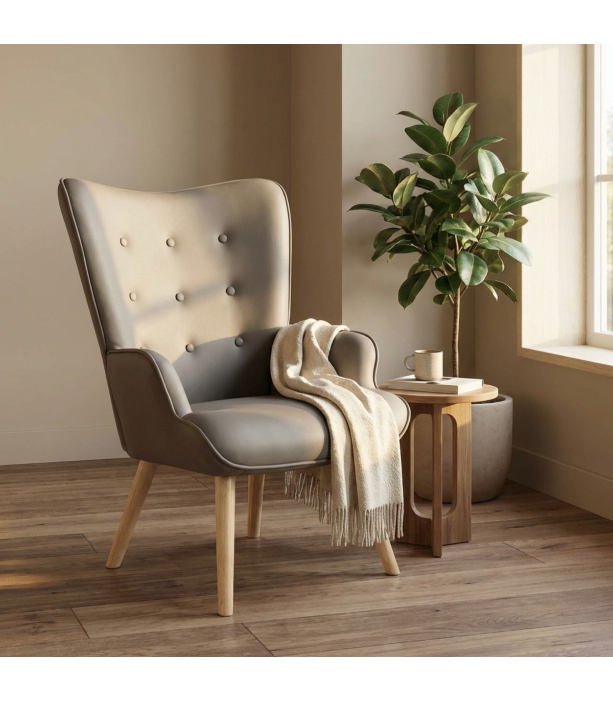 Aporta un toque de estilo nórdico y elegancia a tu hogar con esta butaca tapizada. Su respaldo con botones decorativos y sus reposabrazos envolventes ofrecen una sentada cómoda y acogedora, perfecta para el salón, el dormitorio o un rincón de lectura.