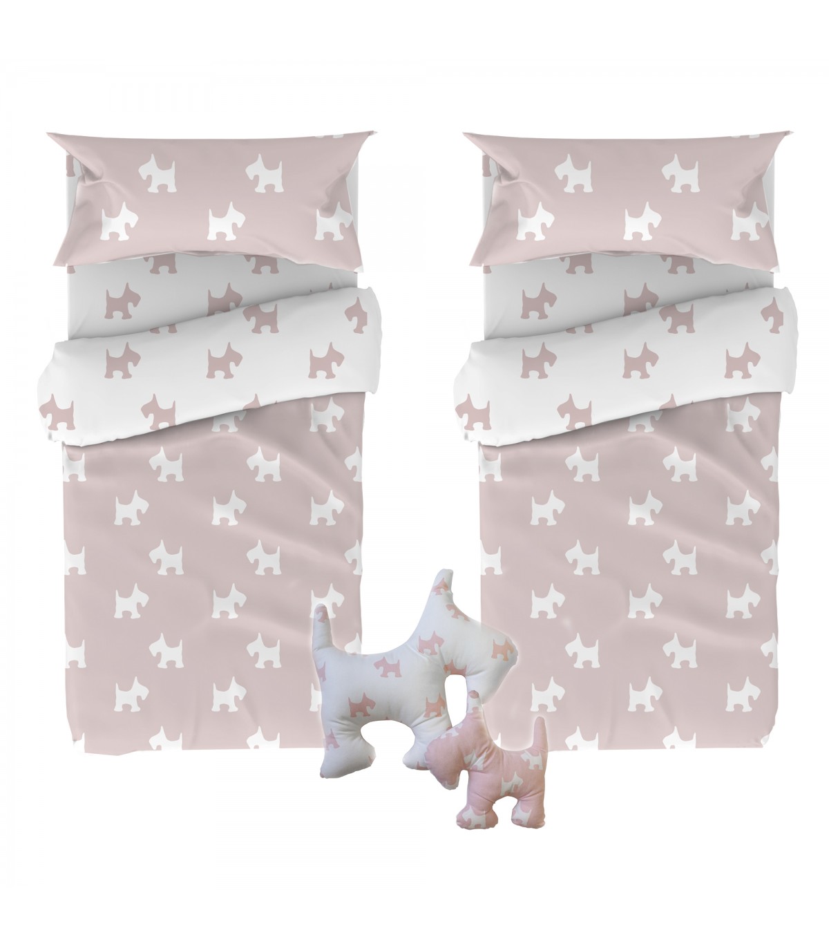 Beautiful children's duvet cover set. Includes reversible duvet cover, fitted sheet and pillowcase. This textile set for children's beds is perfect for beds of 90 x 190 centimetres. It comes in 4 different designs. And it includes the cushion pack as a gift. The colour of the cushion pack may vary slightly from the colour of the duvet cover set.