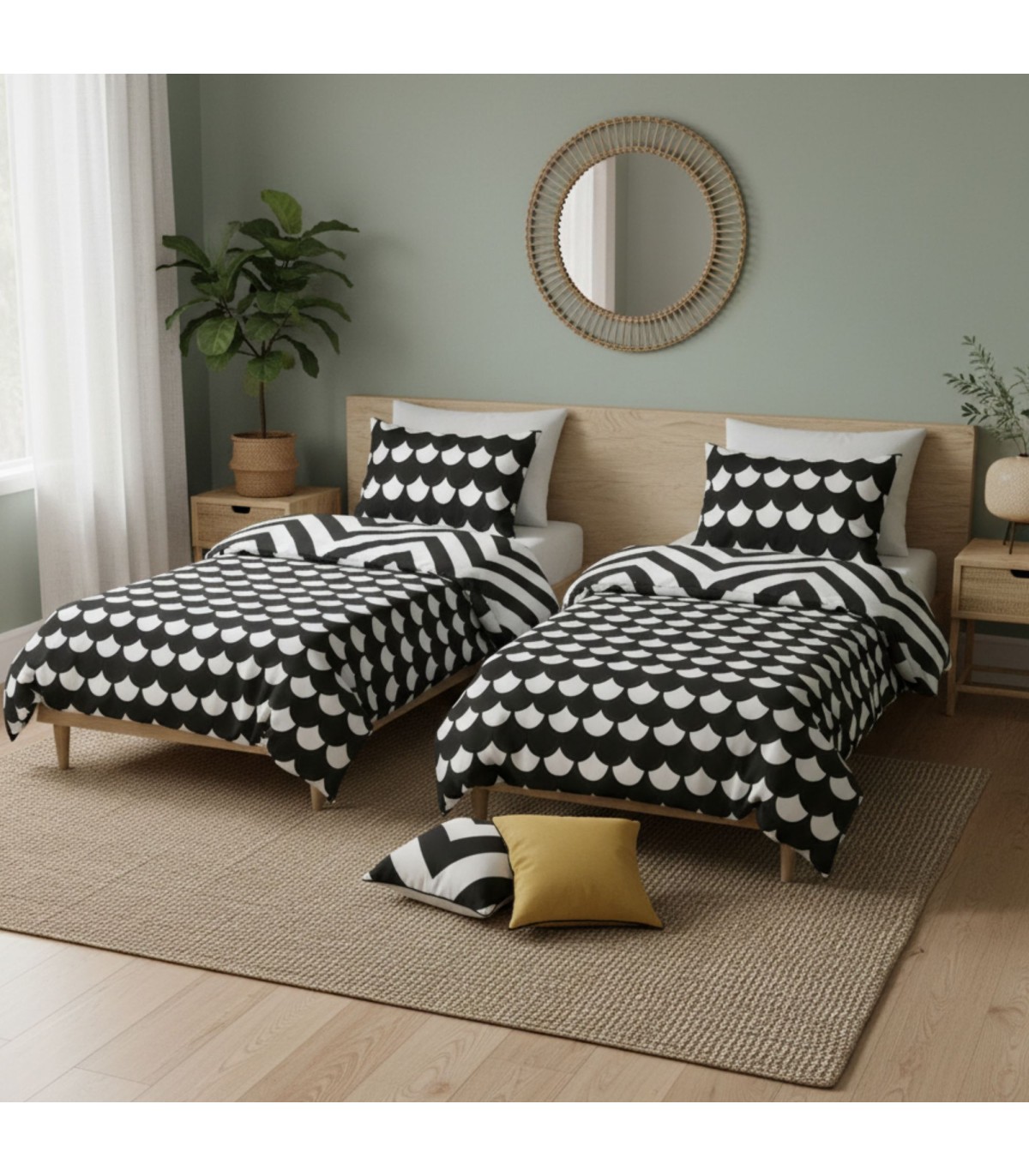 Includes 2 Nordic duvet covers, 2 fitted sheets, 2 pillowcases and 1 pack of 2 cushions.
