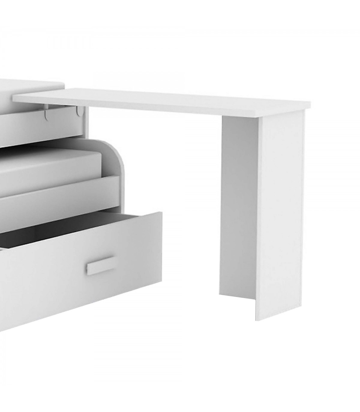 Inclui um suporte metálico que se fixa ao lado da cama Aurora e Lea, para adicionar a altura necessária para que a mesa tenha a altura necessária para uma correcta ergonomia.